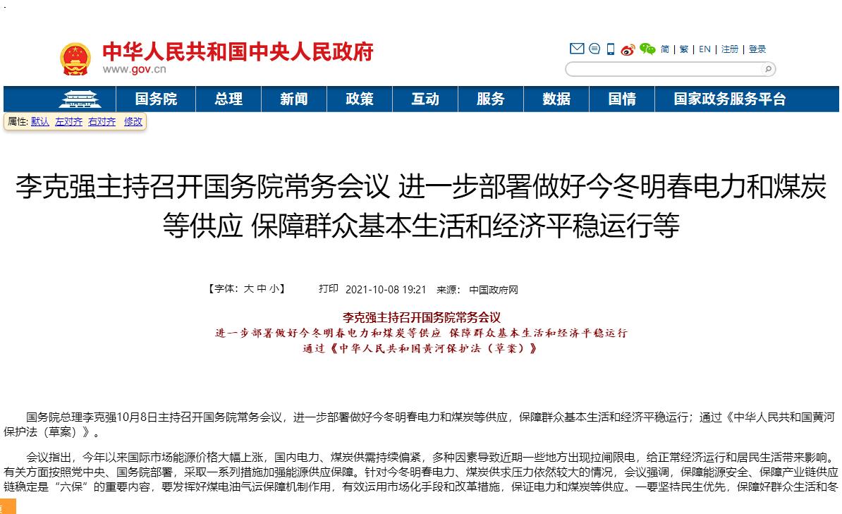 李克強(qiáng)主持召開國務(wù)院常務(wù)會(huì)議 進(jìn)一步部署做好今冬明春電力和煤炭等供應(yīng) 保障群眾基本生活和經(jīng)濟(jì)平穩(wěn)運(yùn)行等